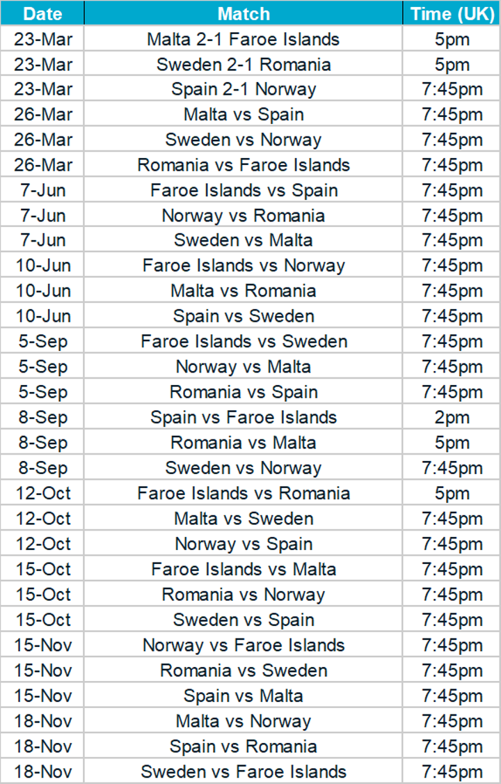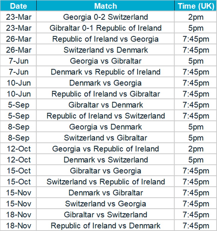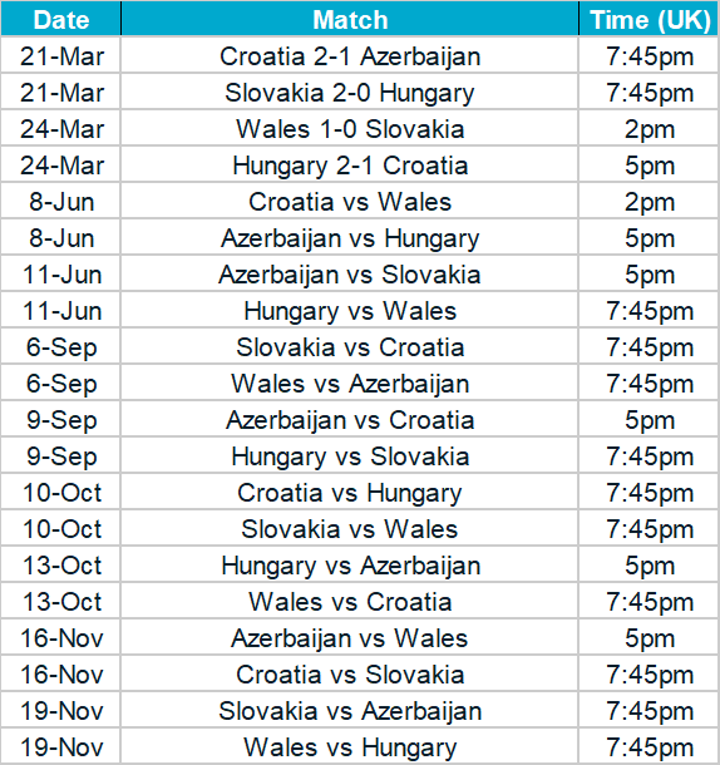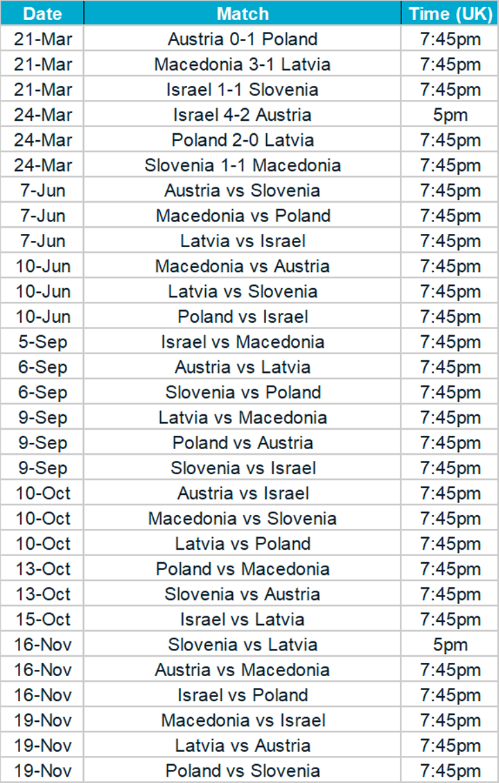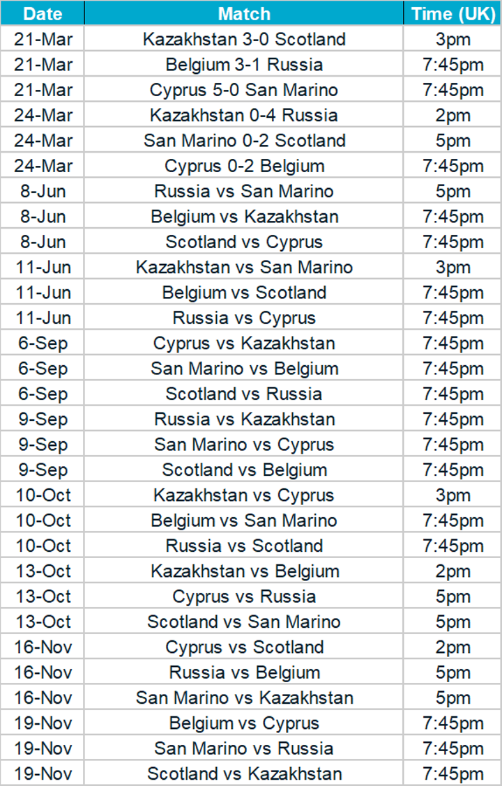 Euro 2020 qualification groups, fixtures & results