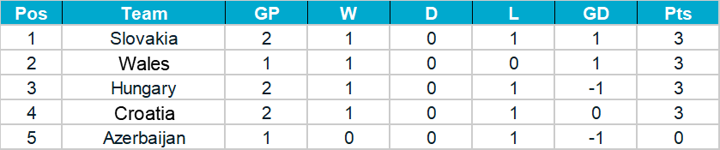 As you can see above, there are 10 qualifying groups: five groups of five teams (A-E) and five groups of six (F-J). The top two teams in each group will qualify automatically for the European Championship.