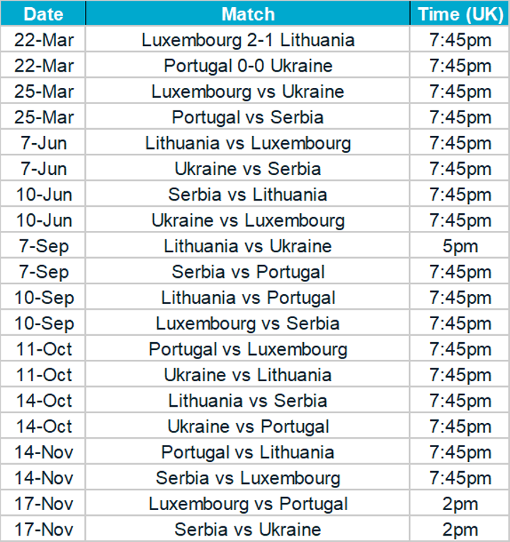 Group H fixtures