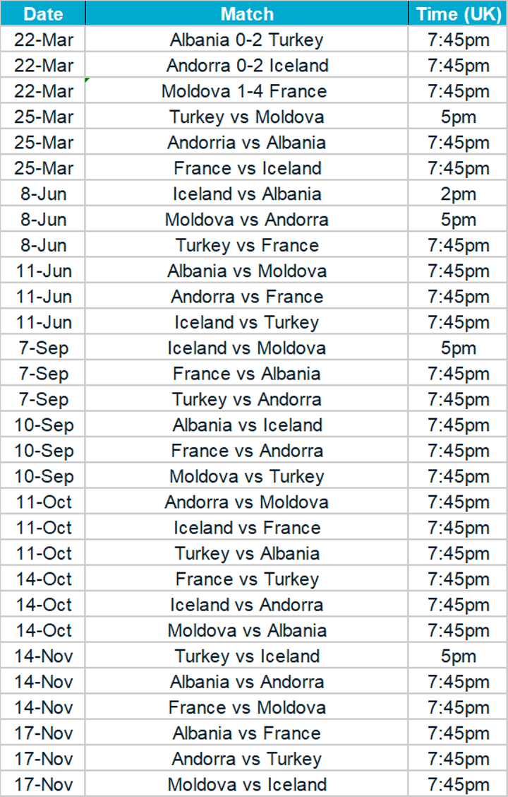 Group A fixtures