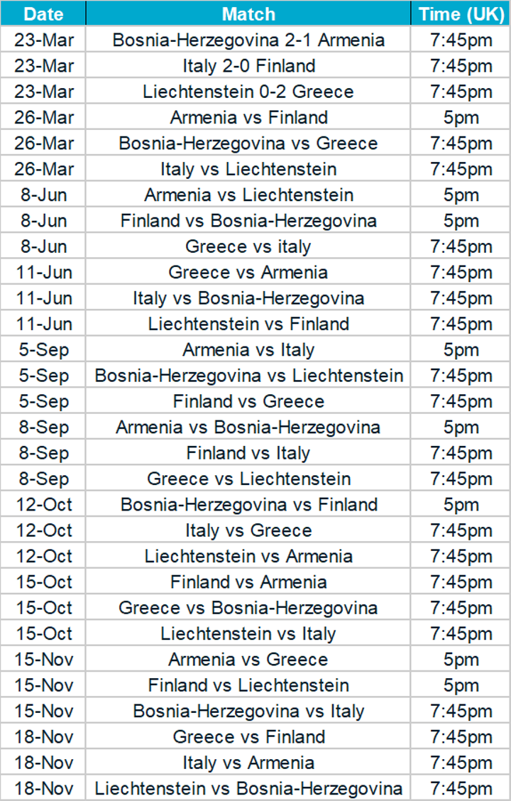 Group G fixtures