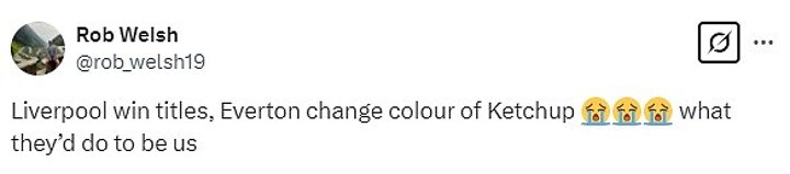 One Red fan quipped: 'Liverpool win titles, Everton change colour of Ketchup. What they’d do to be us.'