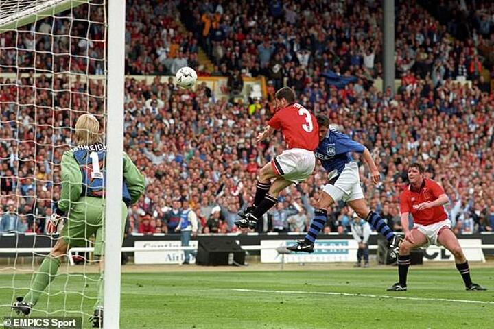 A Paul Rideout header following Graham Stuart's shot off the bar saw the Toffees claim a 1-0 victory against Manchester United in the 1995 FA Cup final and win the cup for a fifth time after withstanding the pressure exerted on Neville Southall's goal by Sir Alex Ferguson's men.