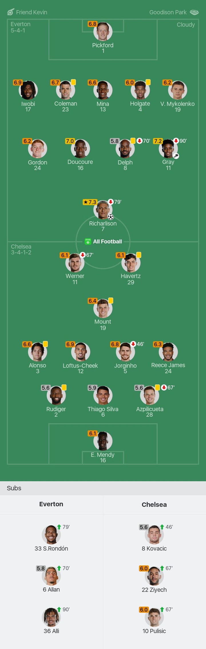 We bring you the player ratings for Everton vs Chelsea as Richarlison becomes Man of the Match with a rating of 7.3.