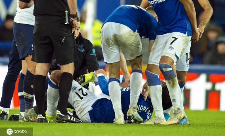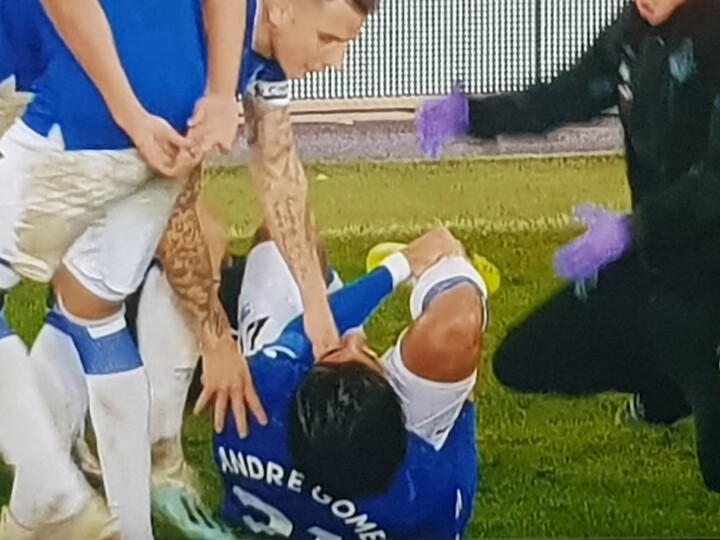 Horrible scenes emerge in Everton-Tottenham game as Everton's Andre Gomes suffers serious ankle injury after being tackled by Son who is sent off in tears.