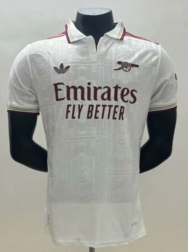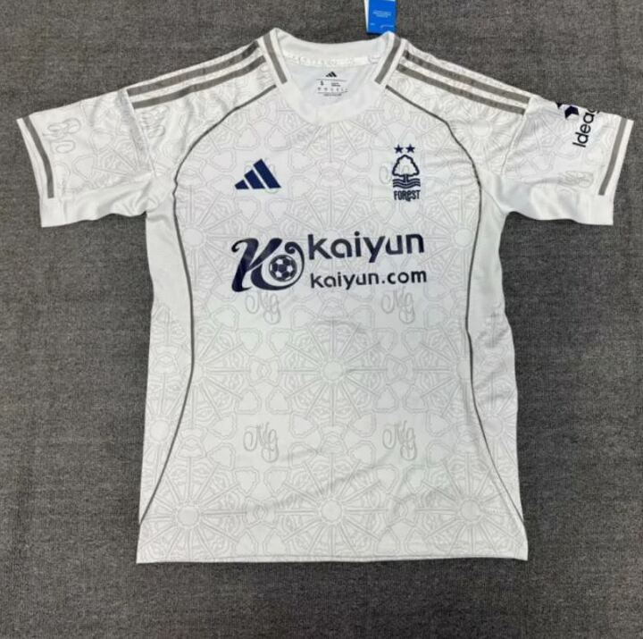 Meanwhile, the alleged away shirt is white with grey Adidas stripes on the shoulders.