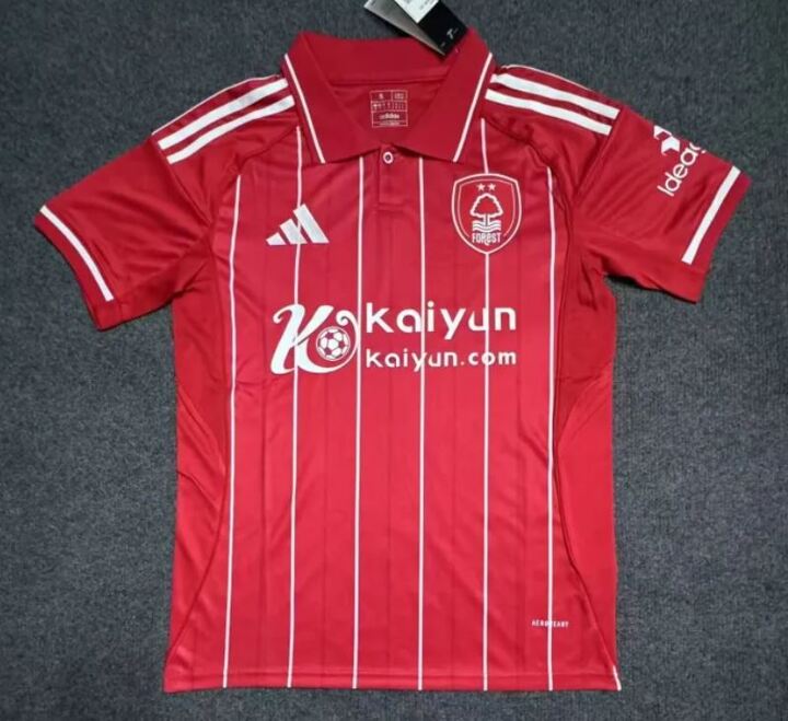The leaked Nottingham Forest home shirt bears a retro look with thin white stripes running vertically down the front.