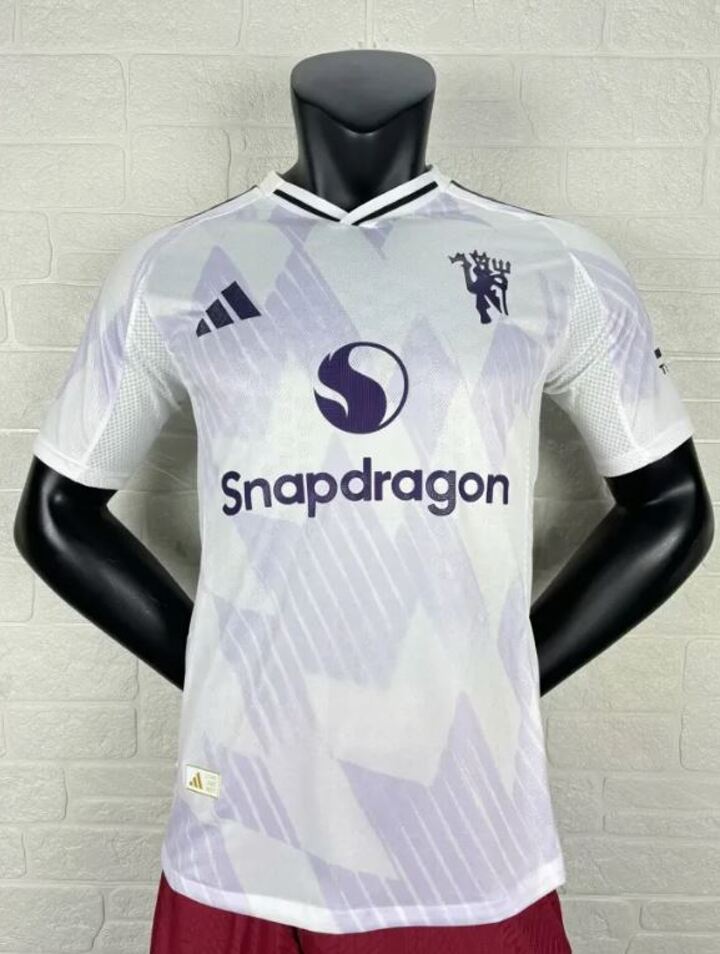 Man Utd's rumoured away shirt is white with hints of lilac.