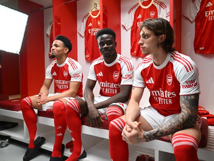 Unlike the Arsenal home kits of recent years, the new shirt, shorts and socks only include red and white elements, with no blue or gold.