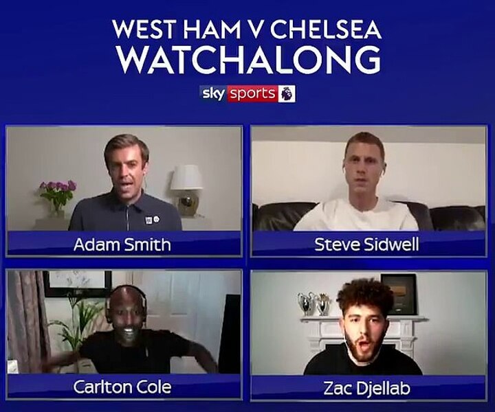 Cole had been watching the game alongside former Chelsea player Steve Sidwell and presenter Zac Djellab and a clip shows him celebrating wildly as West Ham took the lead for the first time - waving his hands in the air and laughing.