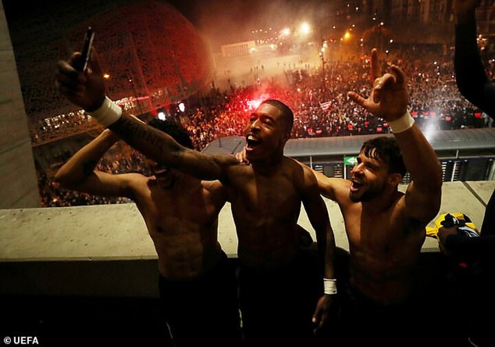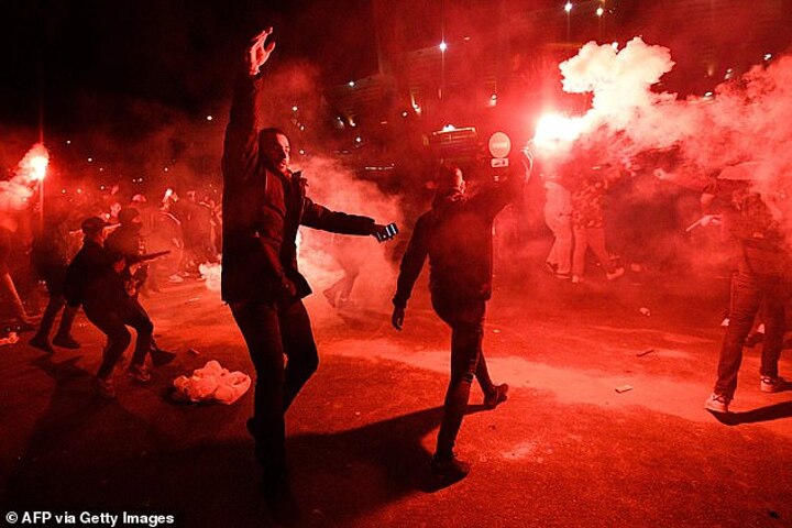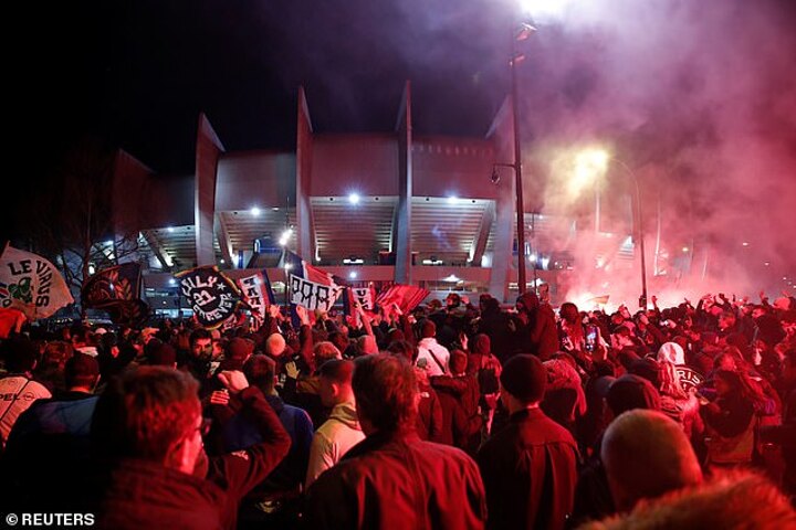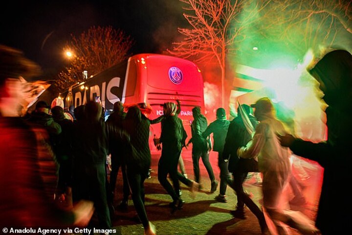 The team bus was accompanied by PSG's Ultras throughout the 10km drive, making its way cautiously through a sea of red and blue smoke. Raucous fans lined the streets, many perched in trees in order to see through the bus windows as they screamed their support.