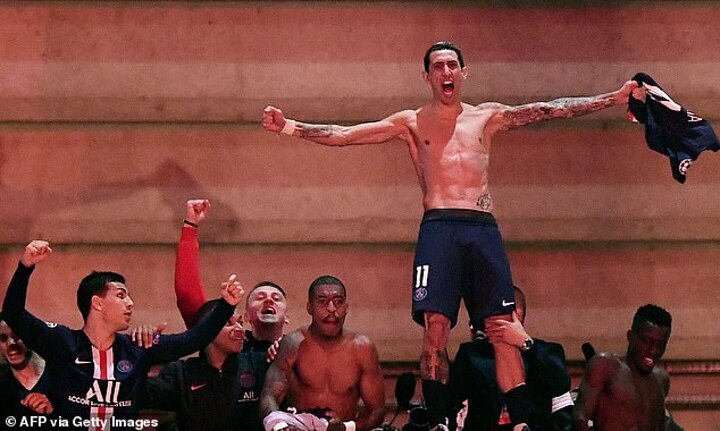 When two shirtless players, Kylian Mbappe and Angel di Maria, suddenly appeared on a concrete perch, the roar was deafening.
