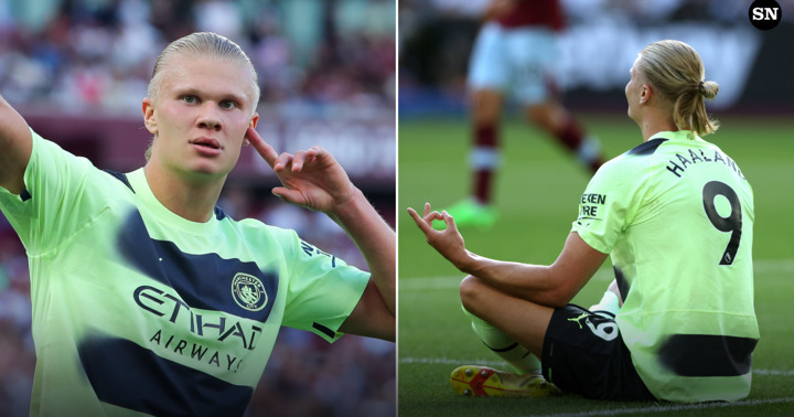 Haaland's most signature goal celebration involves the Norwegian sitting on the ground in a meditative pose, with his wrists resting on his knees and touching one finger to his thumb. This pose is known as the 'Lotus' pose in yoga and is used when a person is looking to find calm, zen, and inner peace.