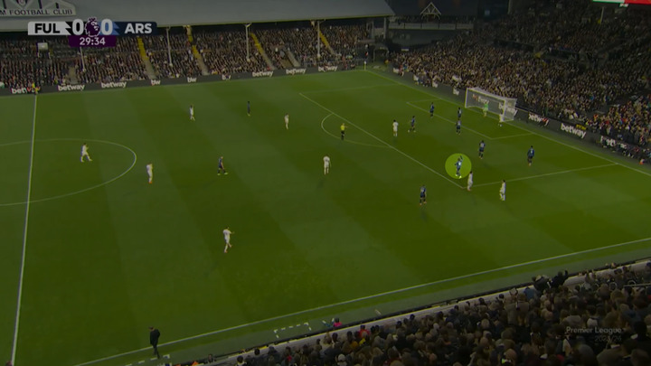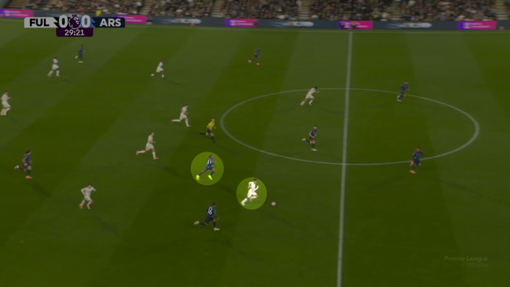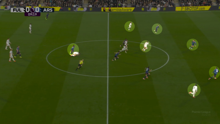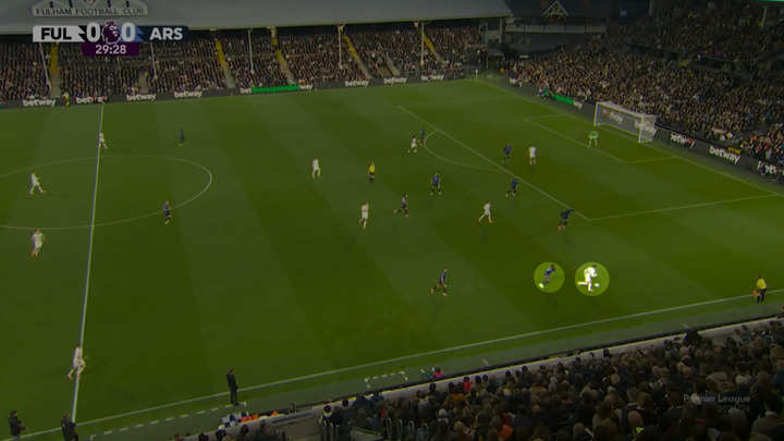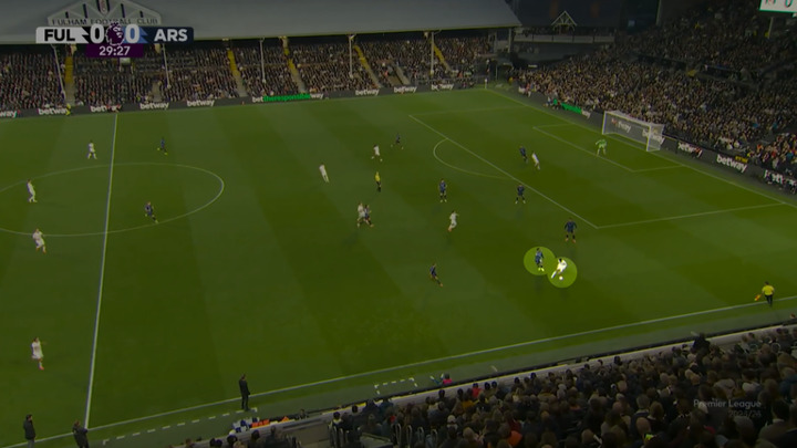 The turnover allowed Josh King to flick the ball on to Raul Jimenez, giving Fulham a three-on-three attack which might have proved costly for Arsenal had the striker's attempted through-ball to Harry Wilson not been slightly overhit.