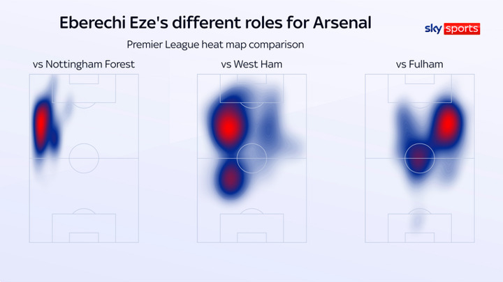 Of course, the requirements of each game are different. There will be occasions when Arsenal are better served using Eze as part of their midfield three. But starting from the left, rather than centrally, would also allow him to take risks with less likelihood of leaving Arsenal exposed to breaks like the ones cited by Arteta against Fulham.