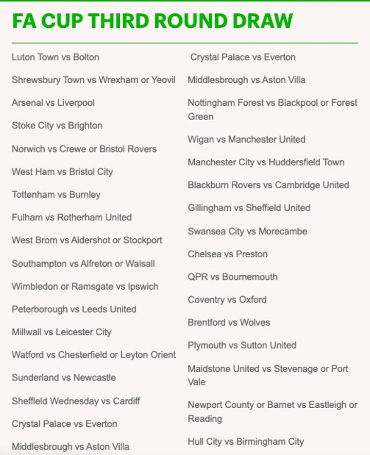 Arsenal will host Liverpool in the third round of the FA Cup after the draw was announced on Sunday afternoon.