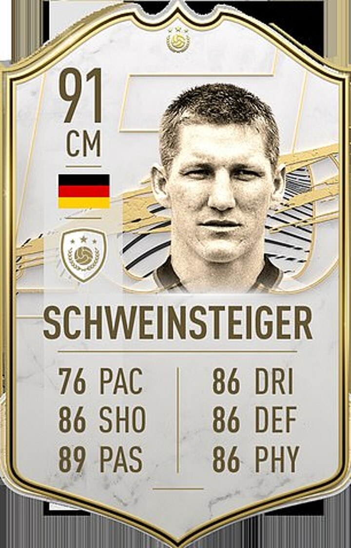 Schweinsteiger will be a rock in the middle of the park, with 86 rating in defending and physical stats, and he's got a serious pass (89) and shot (86) on him too.