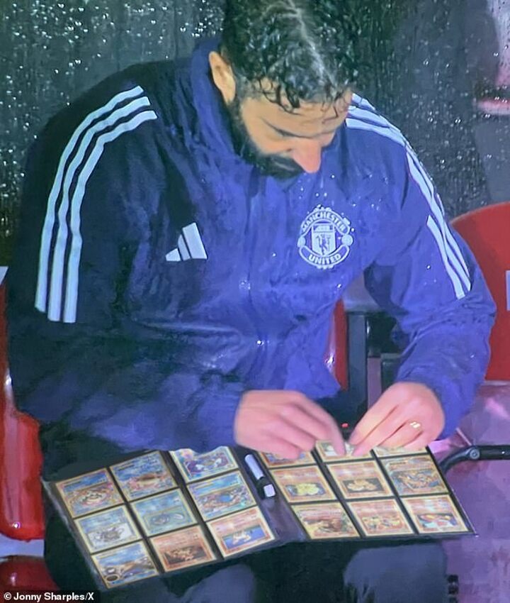 Amorim, 40, was bizarrely captured during Sky Sports' broadcast of the encounter, shifting several small magnets on a tactics board in the dugout during the 62nd minute of the match.
