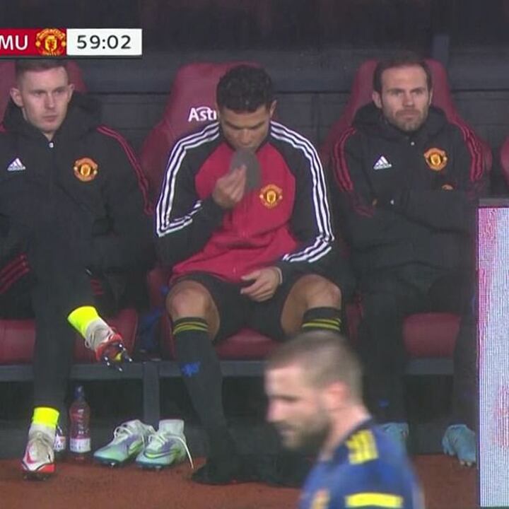 Once he had been given the nod by Rangnick, CR7 grabbed his shin pans and began getting ready to take to the pitch.
