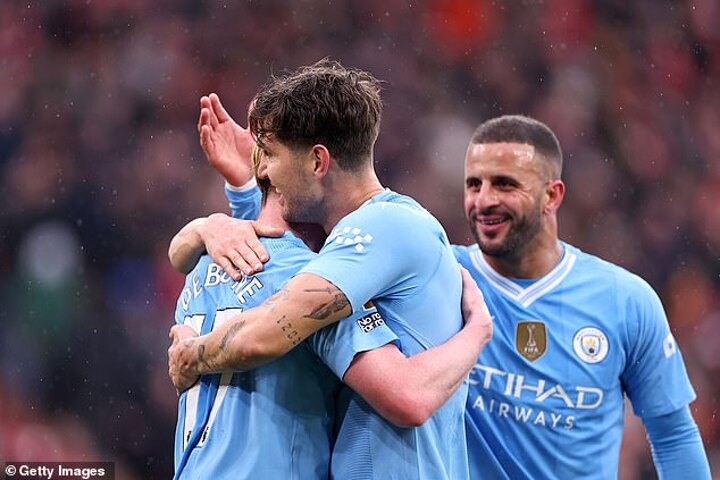 Darwin Nunez had the ball in the net, though VAR ruled his goal offside and it was Stones who found the back of the net for the visitors.