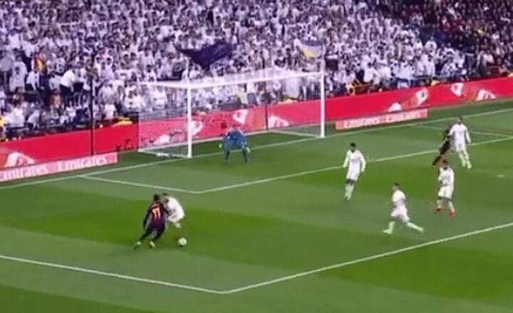 The winger produced a series of stepovers at the Bernabeu to leave Dani Carvajal on the floor as Barca progressed to the Copa del Rey final for the sixth year in succession.