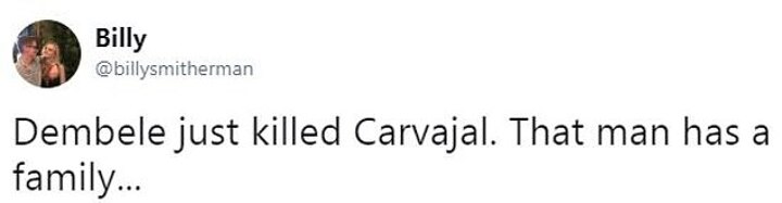One person tweeted: 'Dembele just killed Carvajal. That man has a family...'