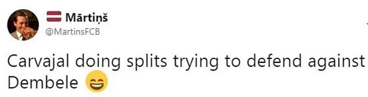 Another fan alluded to Dembele leading Carvajal in a dance as the Spaniard swayed from side to side without getting near the ball.