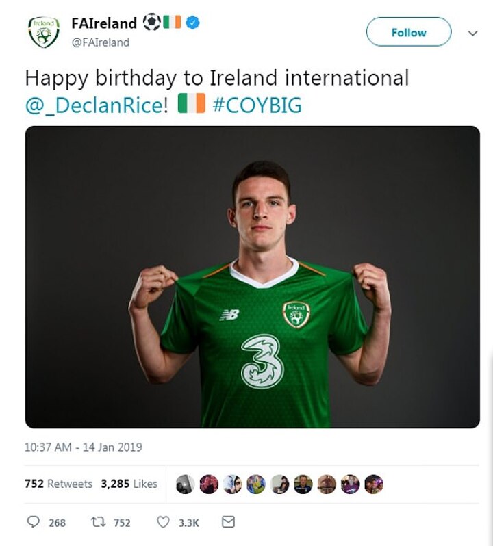 They referred to Rice as an 'Ireland international'. Plenty reacted as though that had confirmed his international allegiance going forward.