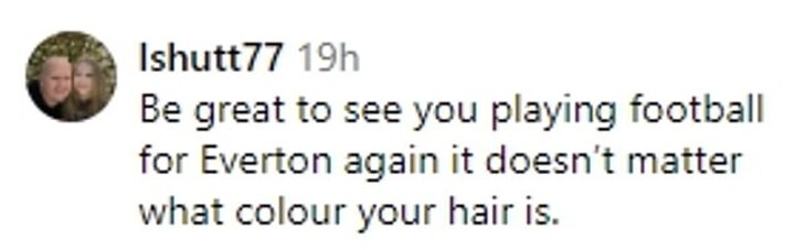 Another said: 'Be great to see you playing football for Everton again. It doesn't matter what colour your hair is'.