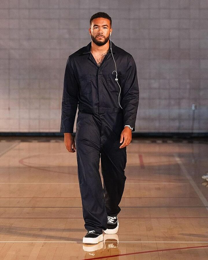 In his downtime before pre-season starts up, 24-year-old James walked the runway for LA-based luxury brand Nahmias, but fans were quick to laugh at the Blues star, who was dressed as a janitor for the experience.