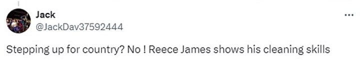 'Stepping up for country? No ! Reece James shows his cleaning skills', wrote another user.