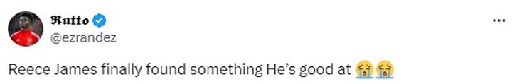 A fourth added 'Reece James finally found something He’s good at', followed by two crying laughter emojis.