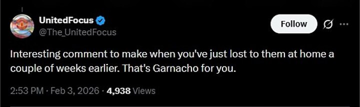 'Interesting comment to make when you've just lost to them at home a couple of weeks earlier. That's Garnacho for you,' a supporter posted.