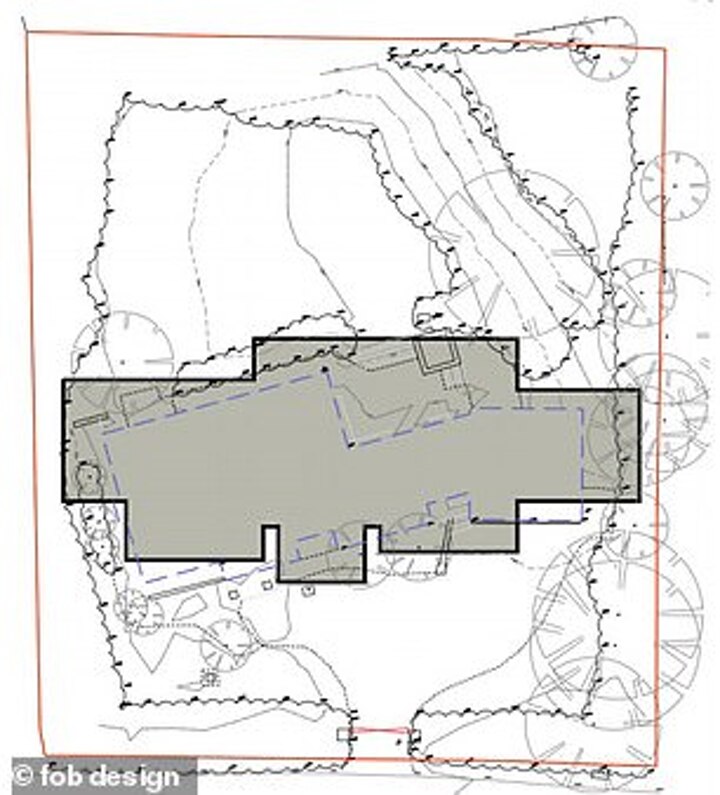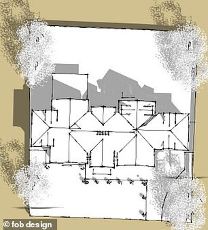 In a submission to the council, the Wilsons' planning agents said it was 'common' for new build replacement dwellings to be constructed in the area (pictured: Overhead drawing of the new house design)