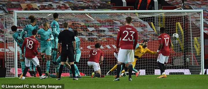 The distance of Sunday's free-kick - barely 20 yards from goal - was perfect for Fernandes to direct the ball around the Liverpool wall and leave goalkeeper Alisson Becker wrong-footed.