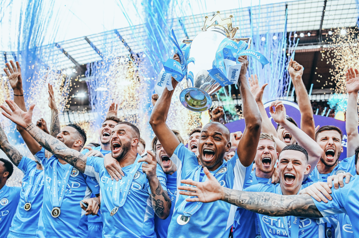 Fernandinho lifts the trophy for Manchester City! 🎉