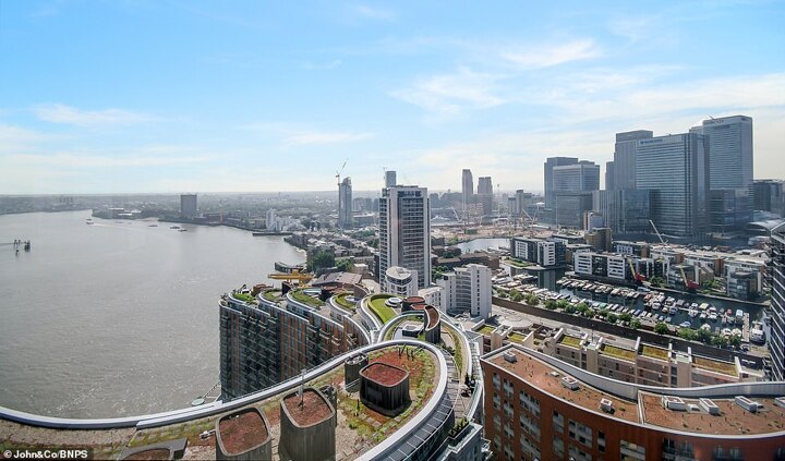 Their former home, on the 25th and 26ft floors of Ontario Tower, near East India Docks in East London, is now on the market with estate agents Johns & Co.