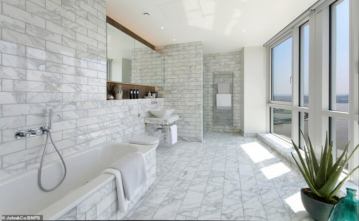 Two of the three double bedrooms have en-suite bathrooms and there are floor-to-ceiling windows throughout the apartment. The new owner will also have access to a gym and swimming pool in the building.