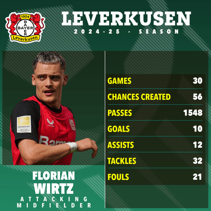 Despite his stellar season, Wirtz never looked close to leaving Leverkusen last summer.