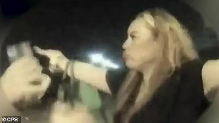 She was abusive to police officers and body-cam footage showed her shouting at them to ‘f*** off ‘ before she was placed in handcuffs and arrested.