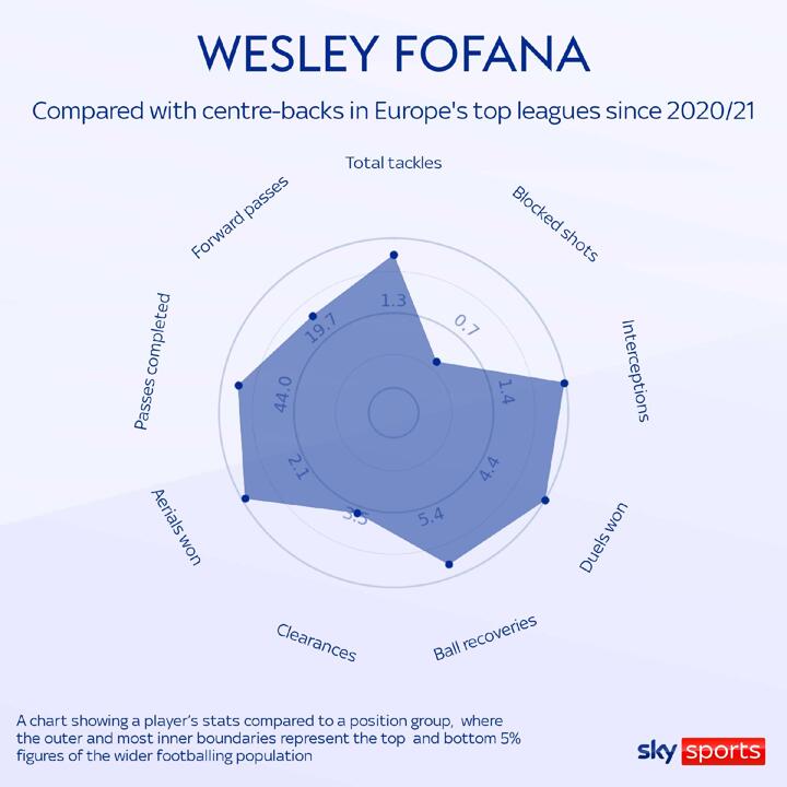 No other Chelsea defender came close to Rudiger's top speed of 36.7 kilometres per hour last season. Trevoh Chalobah was closest at 33.2 kilometres per hour. But Fofana changes that. His top speed for Leicester last season was a healthy 34.5 kilometres per hour.