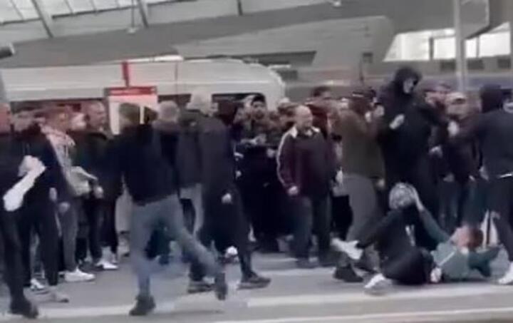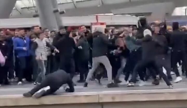 Video footage has emerged of Aston Villa fans allegedly being attacked by Ajax hooligans at a train station ahead of their Europa Conference League clash on Thursday night.
