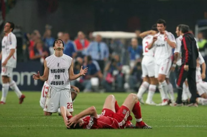 Kaka prayed on the pitch after AC Milan beat Liverpool 2-1 in the 2007 Champions League final, successfully getting revenge for their defeat in 2005 in Istanbul.