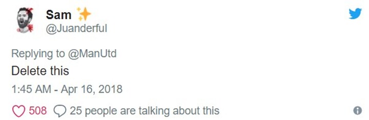 The post was answered by widespread calls to delete, although a handful of Red Devils joined the club in sending their congratulations across the Manchester divide.