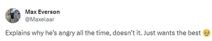 'Explains why he’s angry all the time, doesn’t it. Just wants the best,' a third commented.