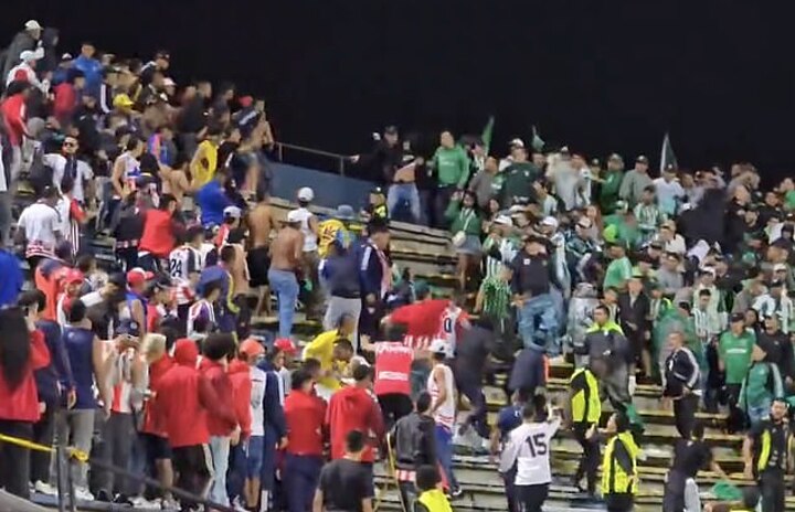 Atletico Nacional and Atletico Junior were in the second half of their Prima A clash when fights between the two sets of fans caused the match to be halted.