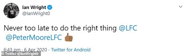 Chief executive Peter Moore wrote: 'Allowing for perspective in these unprecedented and harrowing times, it is important to address an issue we, as an organisation, have been involved in since the weekend.
