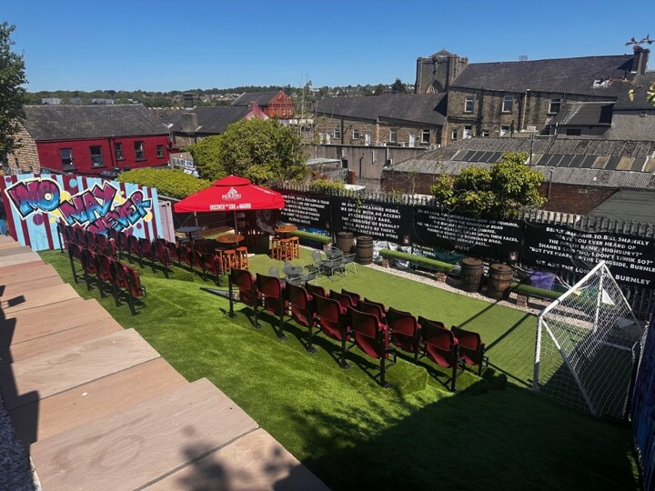 The Royal Dyche - named after ex-Clarets boss Sean Dyche - has created a 'Little Longside' home end with club seats, a mini football pitch and badge from the home dugout as its centrepiece.