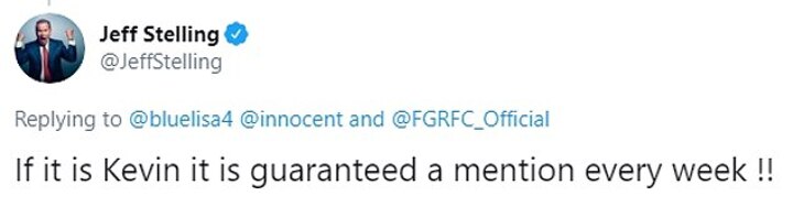 Soccer Saturday's Jeff Stelling was delighted at the news the stadium could potentially be called Kevin, with the Sky Sports presenter tweeting: 'If it is Kevin it is guaranteed a mention every week!!'