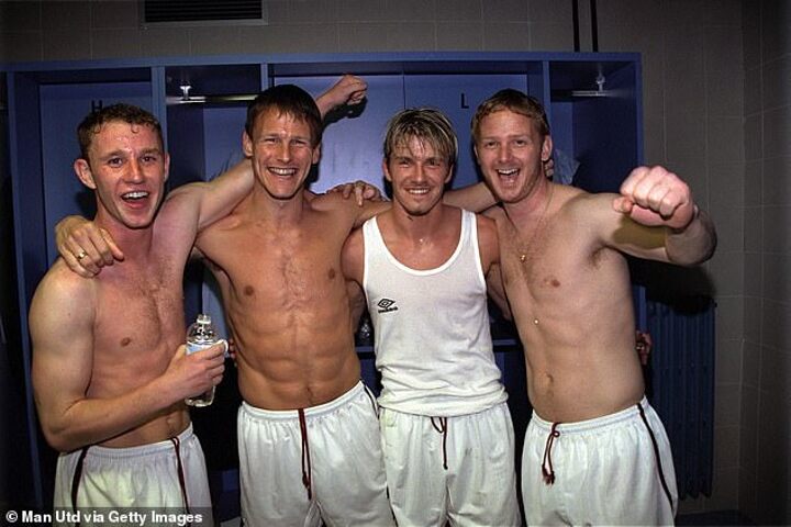 Changing-room footage after the game showed just what it meant to the players, with Dwight Yorke high-fiving all his team-mates - as well as Sir Bobby Charlton. Even a suited and booted Giggs enjoyed the occasion.